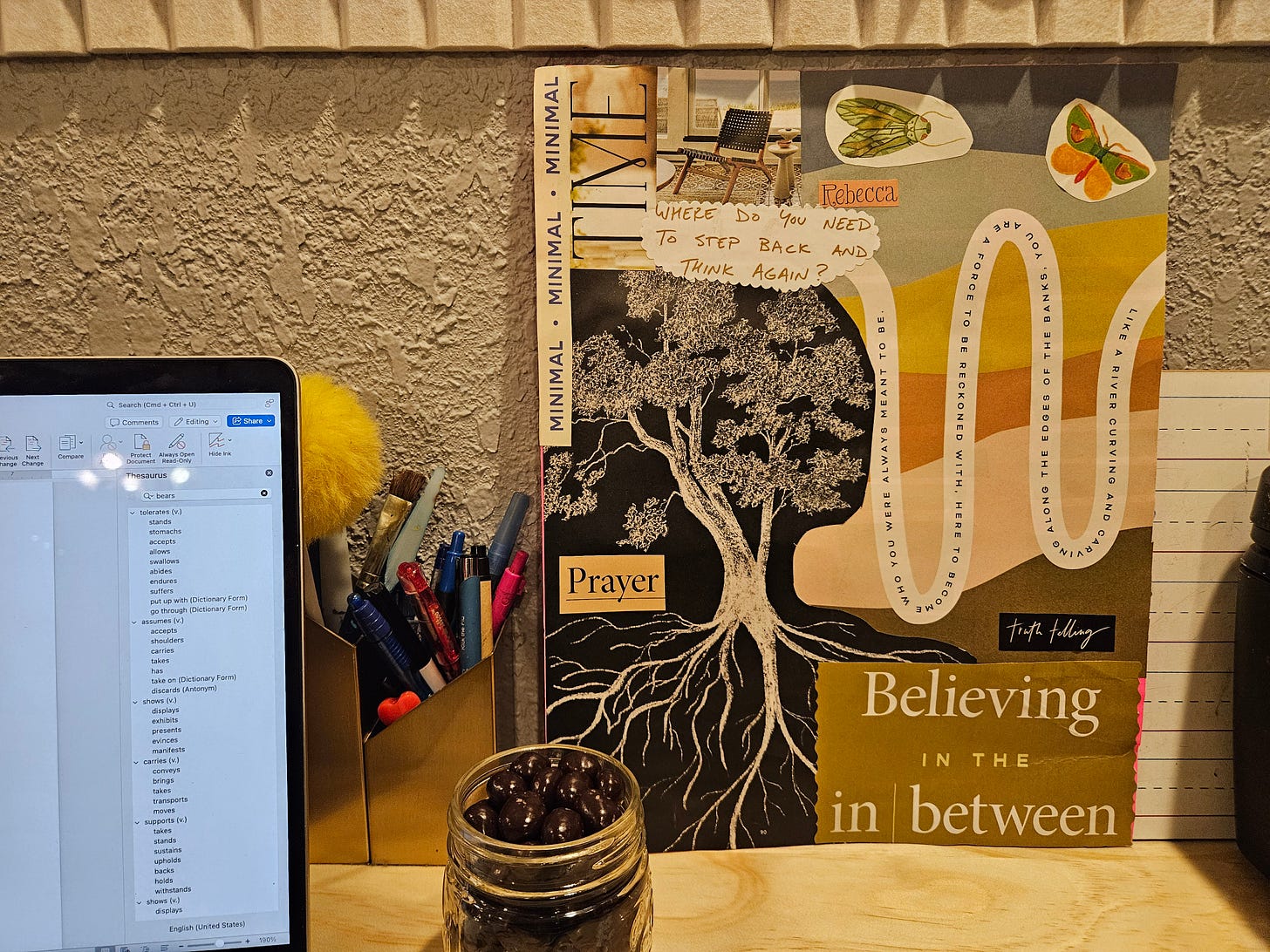 I got a new desk, and in organizing to set up the new one, I unearthed this collage I made on a snow day two years ago. It’s perfect for January and still aligns with my MO in the world.